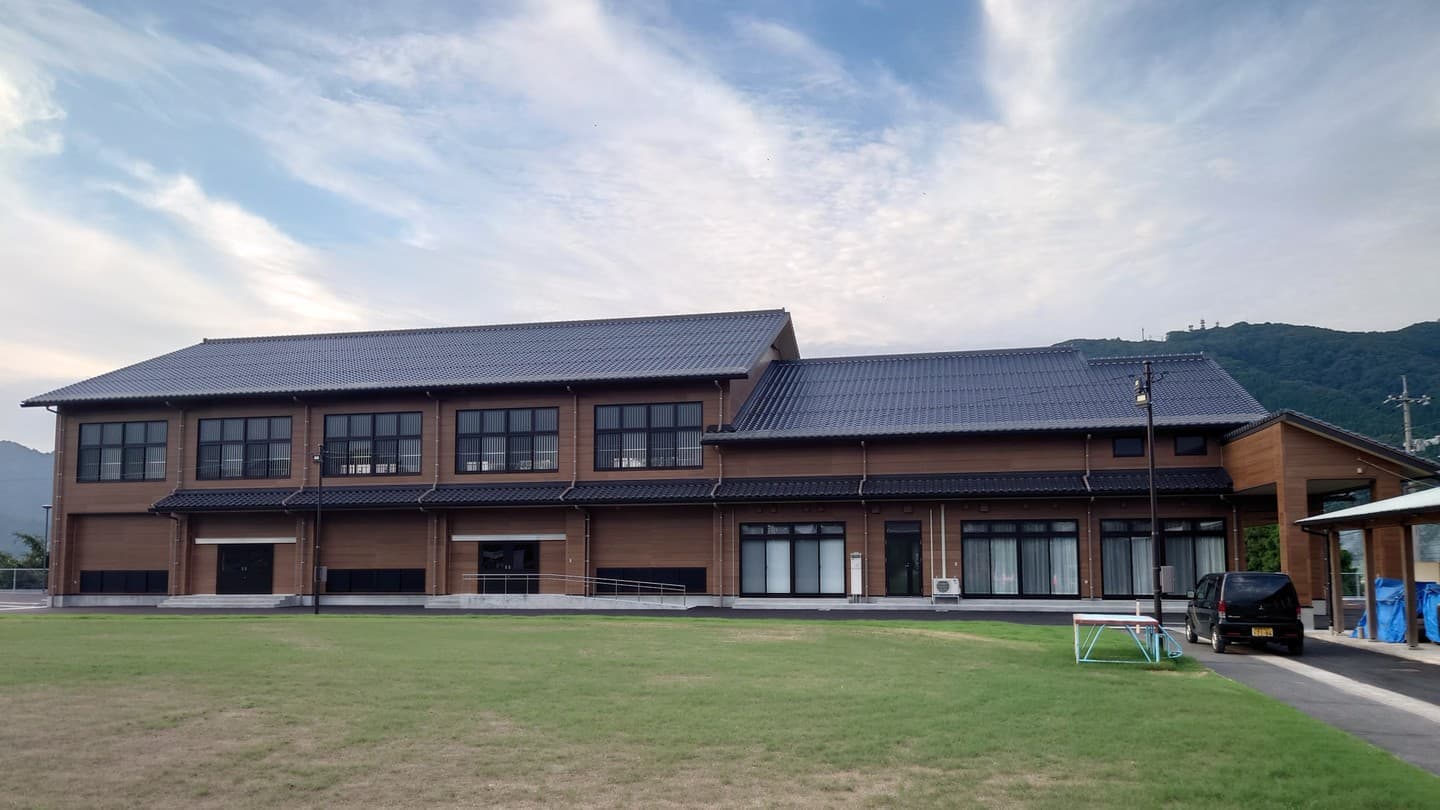 鳥取県鳥取市河原町にある国英地区活性化新築工事にて階段手摺等の金属工事を担当させて頂きました。また、玄関に木製看板設置などもさせていただいております。