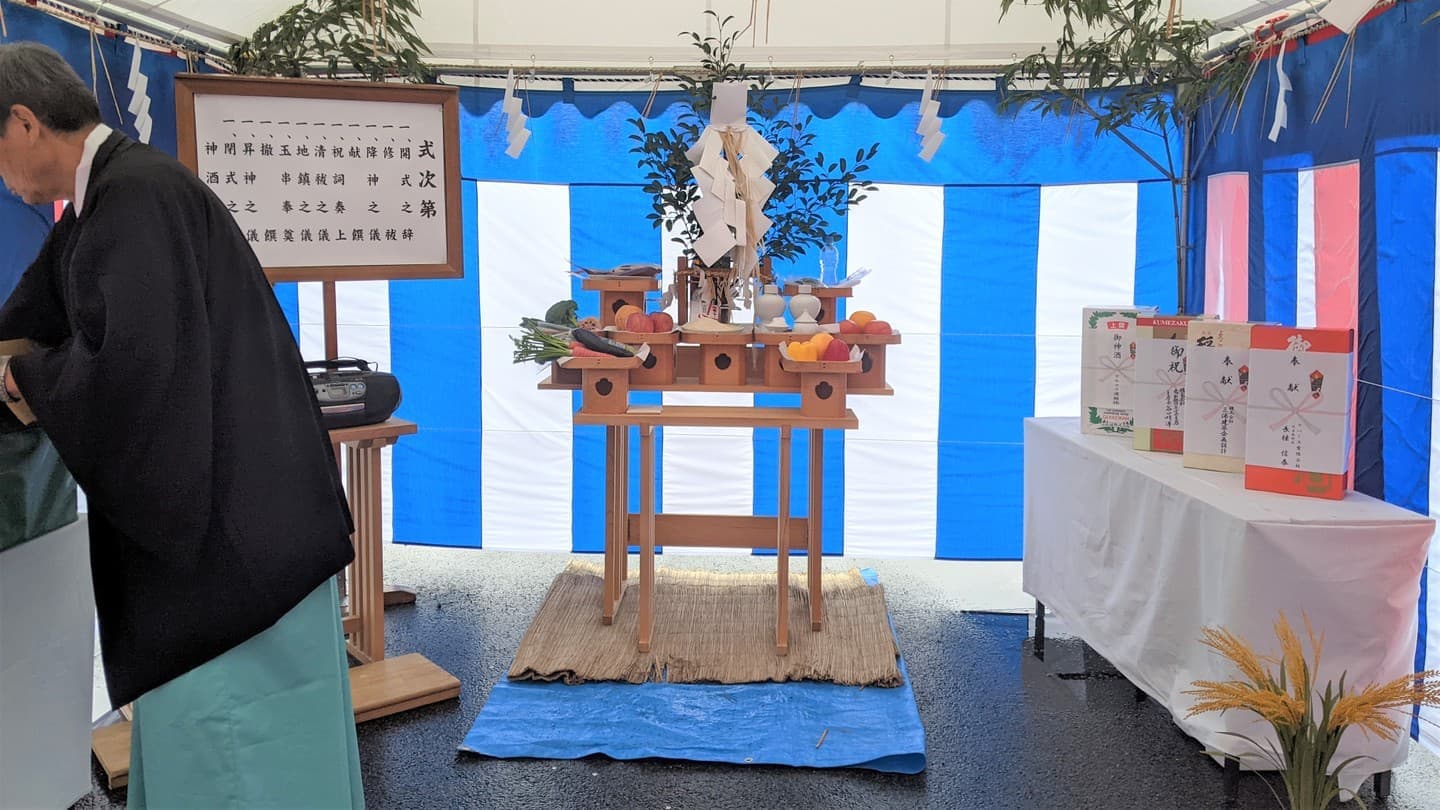 鳥取県米子市にある某運送会社の倉庫新築工事に伴う地鎮祭を行いました。生憎の雨かと思ったのですが、地鎮祭が始まるころには雨も上がりました。神社へ参拝する際の雨は禊の雨で、その後雨が上がると大変縁起が良いというのを思いだし、地鎮祭のこの天気も大変縁起がよいに違いないと信じています。