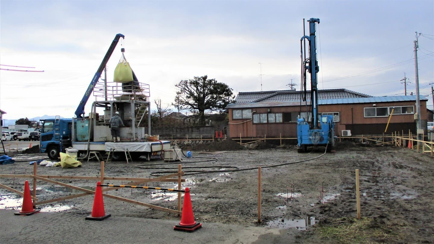 鳥取県西部の某倉庫新築工事では、杭工事が始まりました。成田の現場を担当していた社員が、担当しています。冬とはいえ温暖だった成田の現場に比べると山陰の冬の現場は寒さが段違いの様です。高知出身の社員は慣れるまでに少々時間が必要のようです。