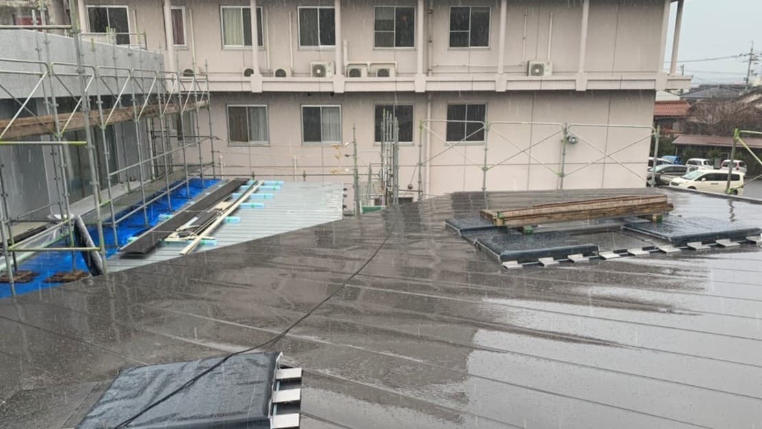 島根県東部にて、Hクリニックの改修・改築工事を行っています。屋根工事他を行っています。現地まで設計室の担当者が確認にいって図面を描いたりしています。