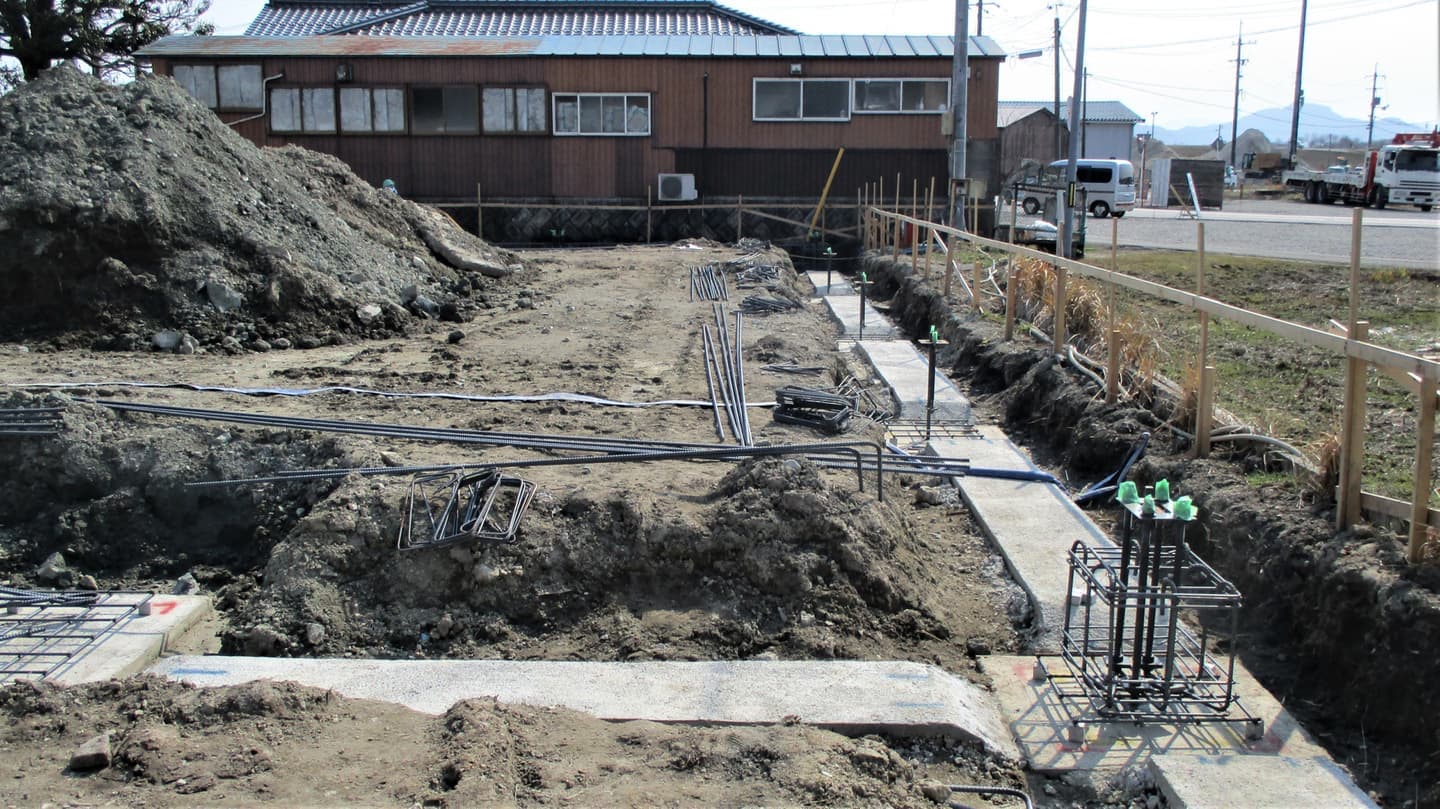鳥取県西部の某倉庫新築工事は引き続き基礎工事を行っています。土佐っ子社員は日々温かくなっていく気温に軽やかになっています。