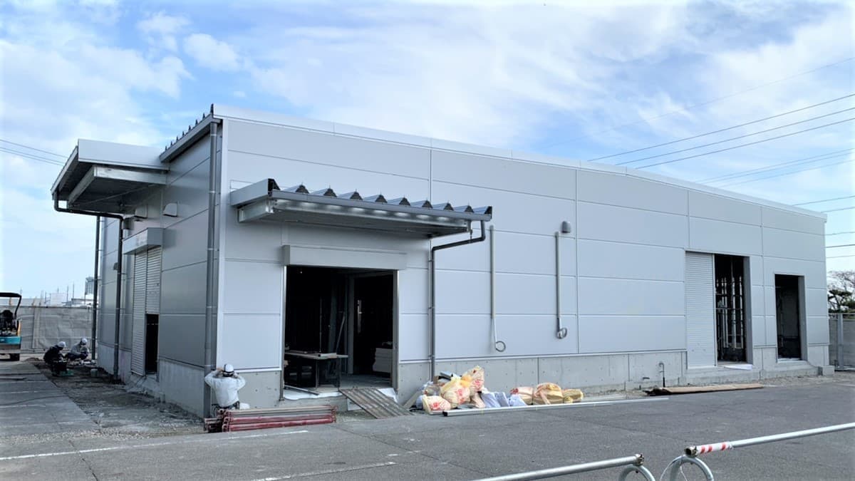 鳥取県西部にありますS水産物直売センターが完工しています。一番寒い頃に建方を行っていた現場が、春の訪れと共に完工を迎えました。 お客様の笑顔溢れる場所なるといいなと思っております。