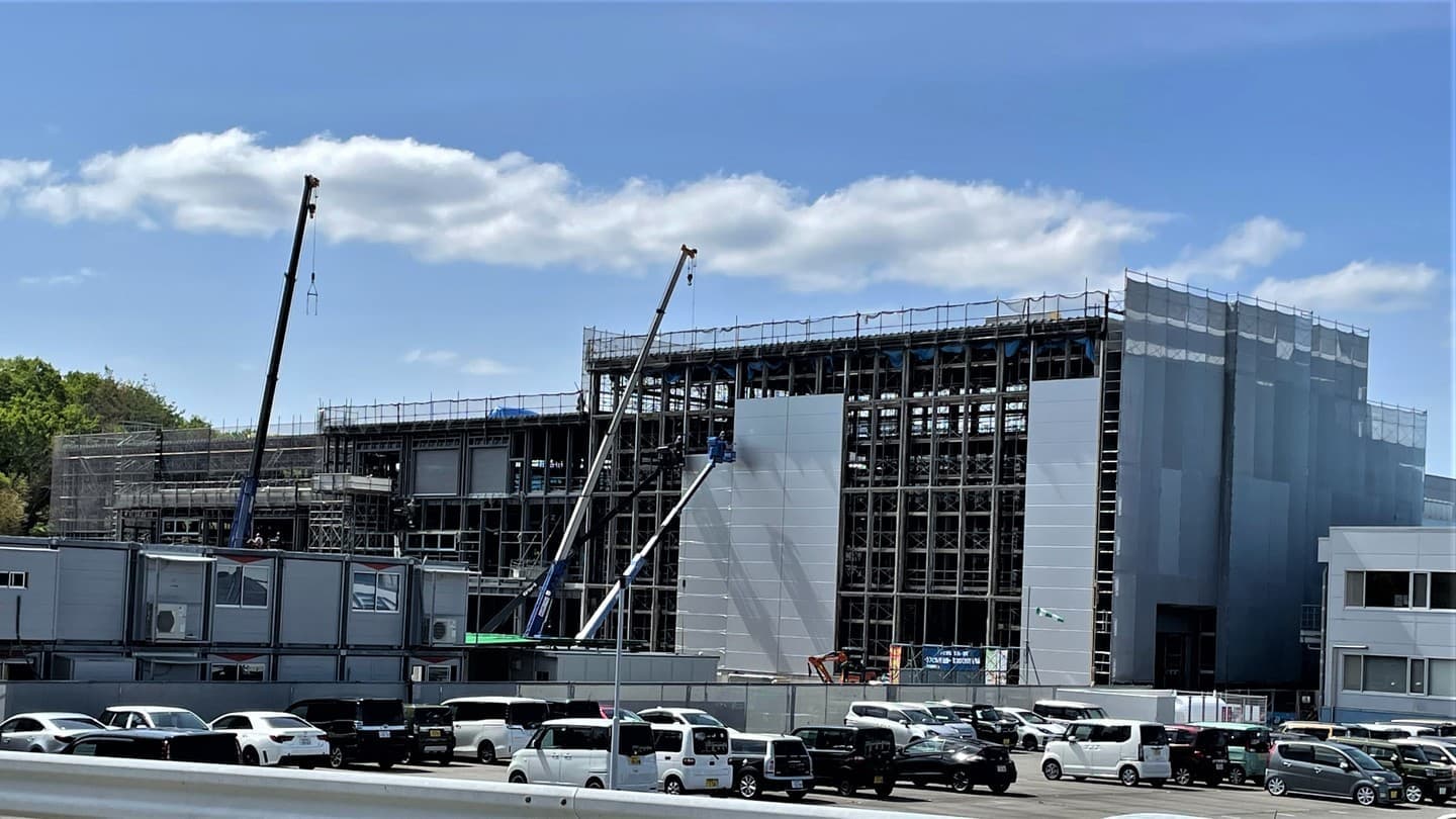 3月中頃に建方初日を迎えた鳥取県西部で進行中の某ホールですが、順調に工事も進み完工が見えてきました。7月の営業開始を予定されているそうです。