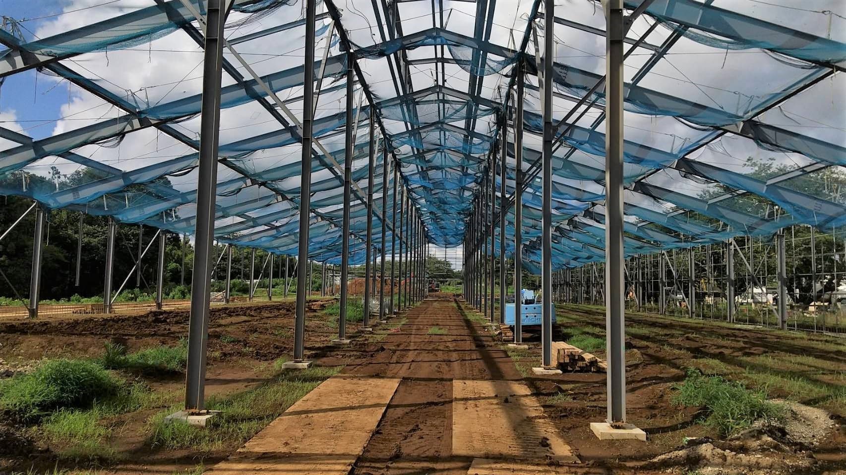 千葉県成田市の新築工事ですが、牛舎に引き続き堆肥舎3棟の建て方工事も始まりました。牛舎はタイトフレーム取付を行なっています。