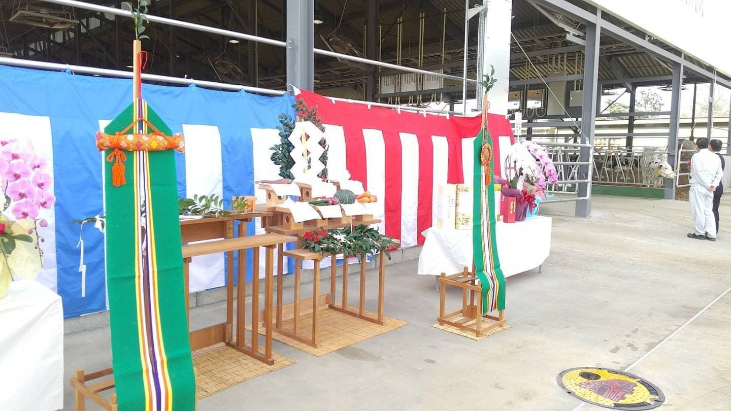 千葉県成田市にある成田ゆめ牧場の現場で昨年末竣工式が行われました。竣工式の少し前に旧牛舎にいた牛が引っ越しをしてきました。新牛舎で収容できる牛の1/10程度の為、広々として牛舎のなかにちょこんといる牛たちがとても愛らしかったです。