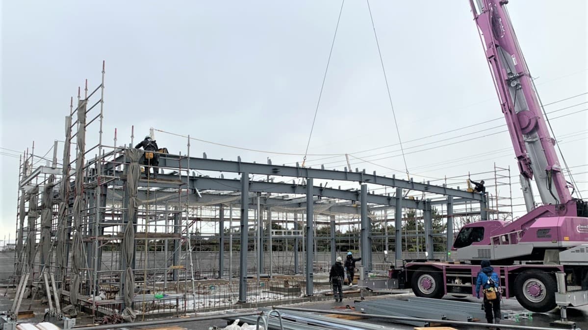 大寒も過ぎ少しづつ日が落ちるのも遅くなって気がします。山陰の冬なだけあって、この1週間晴れた日はありませんでした。そんな中でも建方工事は粛々と進行中です。