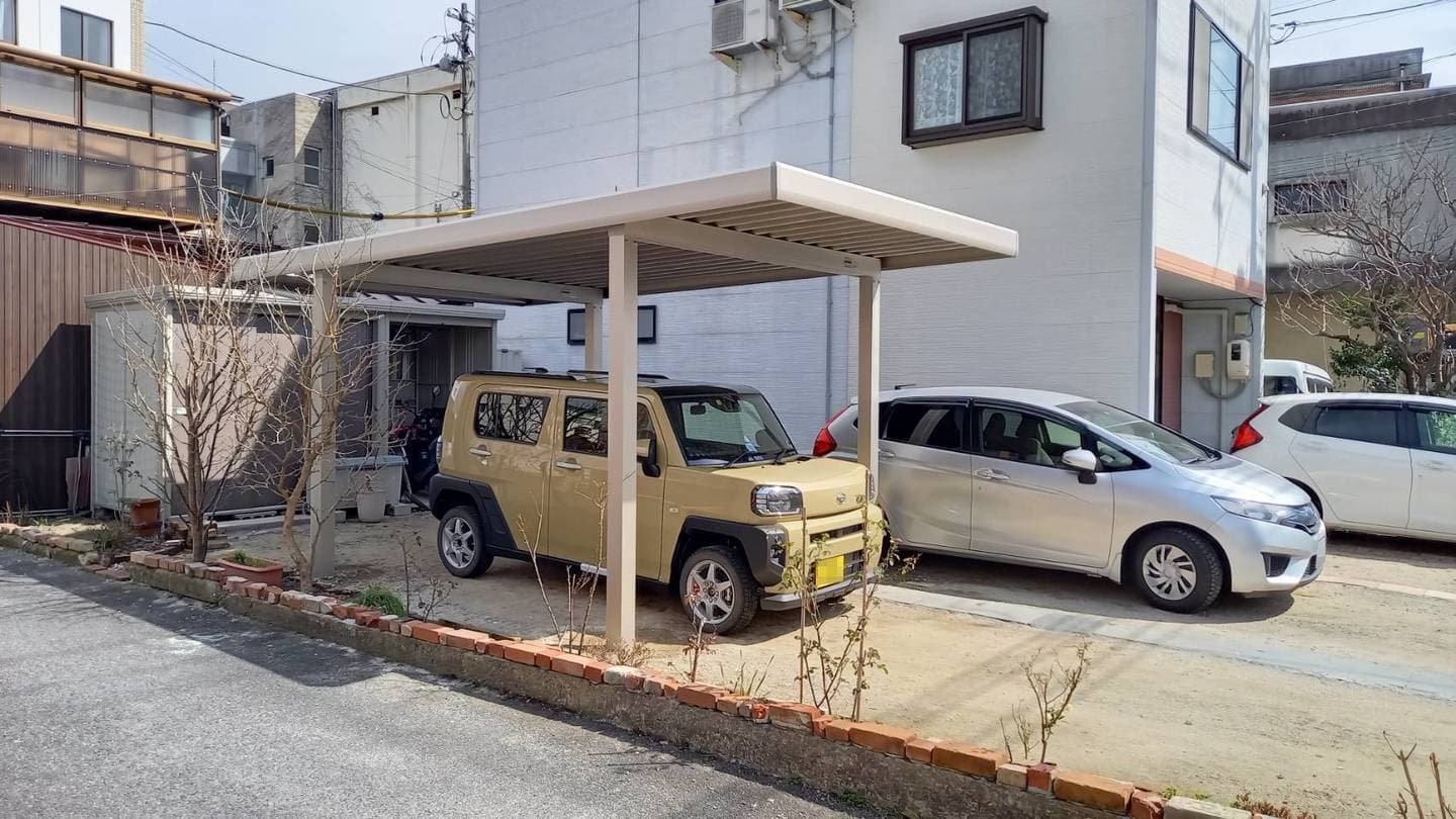 +4本柱のタイプを選ばれた理由としてはポリカ屋根では将来的な劣化に不安を感じられたこと、近年増えている積雪量に対応する為とのこと。今度の冬はどんとこい??