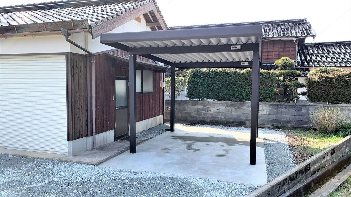 鳥取県西部のN邸にてエクステリア工事を行いました。先日同様の工事を行ったO邸と同じ折版屋根