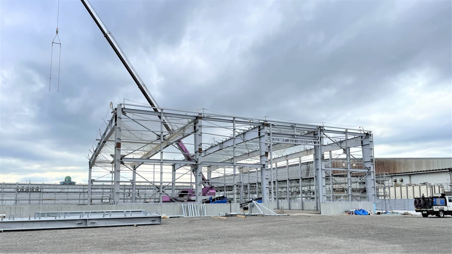 鳥取県西部で行っているM運輸様倉庫新築工事ですが、先日建方工事が終了しました。土佐っ子も上司の指示に従いながら機敏に作業を行っています。