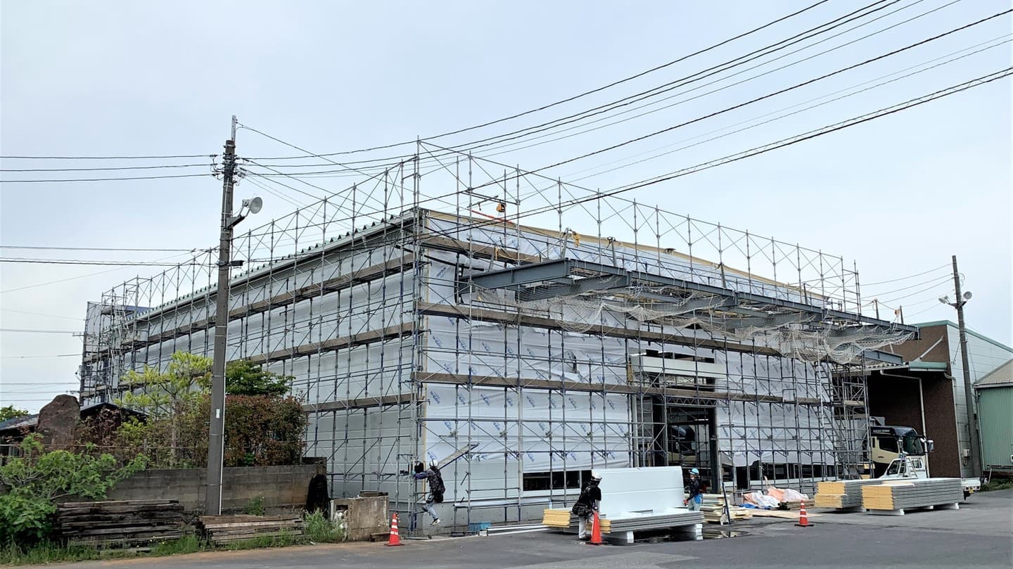 3月中頃に建方初日を迎えた鳥取県西部で進行中の某ホールですが、順調に工事も進み完工が見えてきました。7月の営業開始を予定されているそうです。