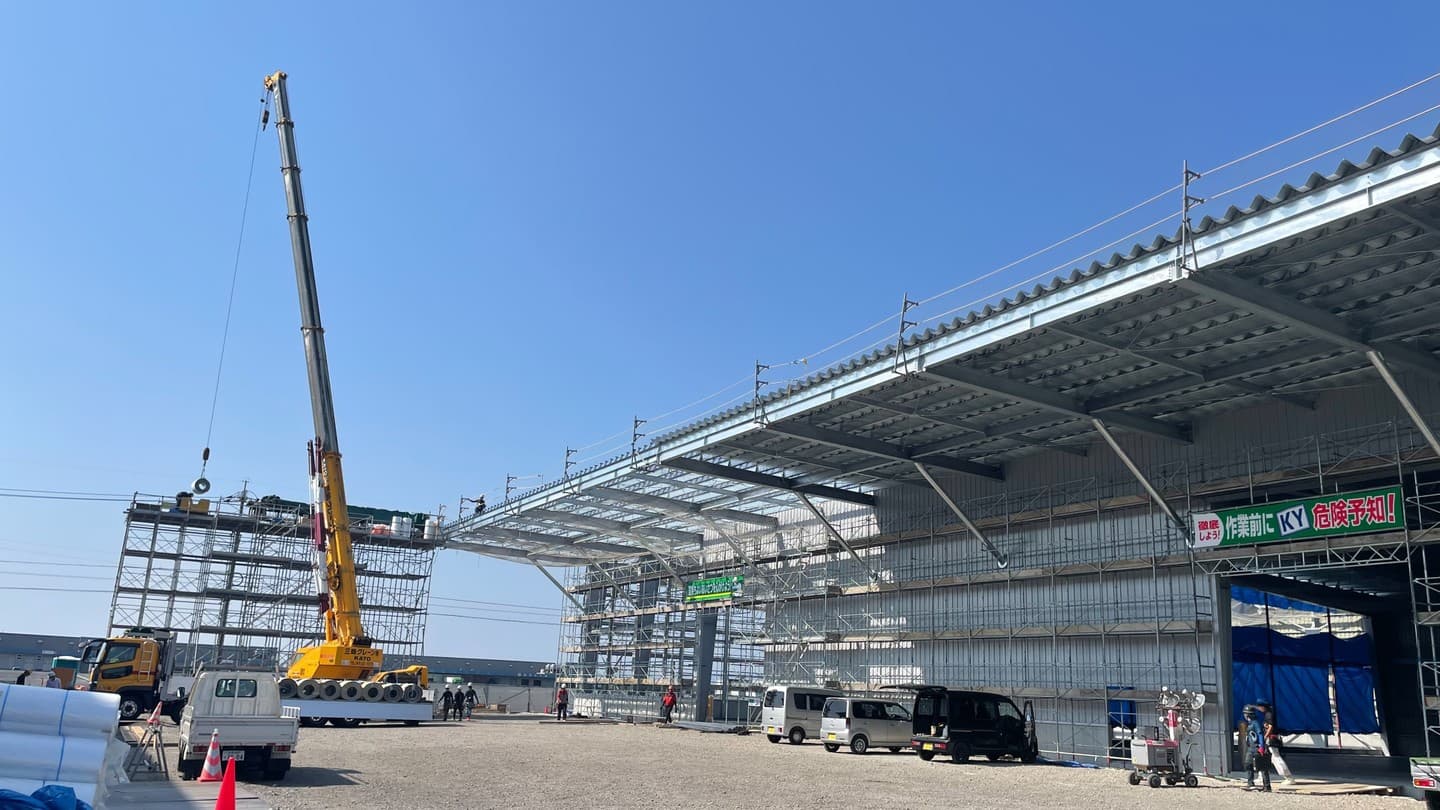 広島県東広島市にあるN広島工場増築工事ですが引き続き壁工事を行っています。来週末にも三回目のパネルをお届けし、引き続き工事を行っていく日程となっています。
