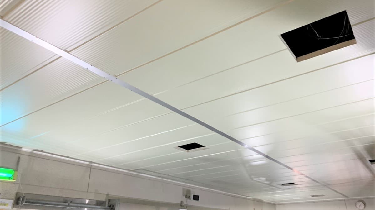 広島県東広島市にあるN広島工場増築工事ですが、先日自主検査を行いました。こちらの現場で採用して頂いたのはフッ素樹脂鋼板外皮0.8t+内皮0.5tの特殊断熱パネルです。